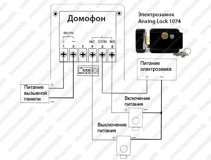 Открытие замка с помощью домофона. Подключив замок к аудио/видеодомофону, Вы сможете удаленно открыть дверь.